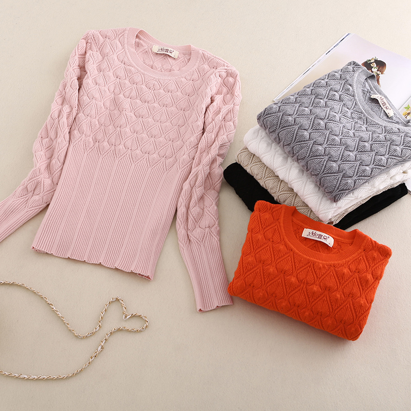 / 春季短款圓領毛衣女套頭針織衫女春季新款長袖修身打底毛衣女