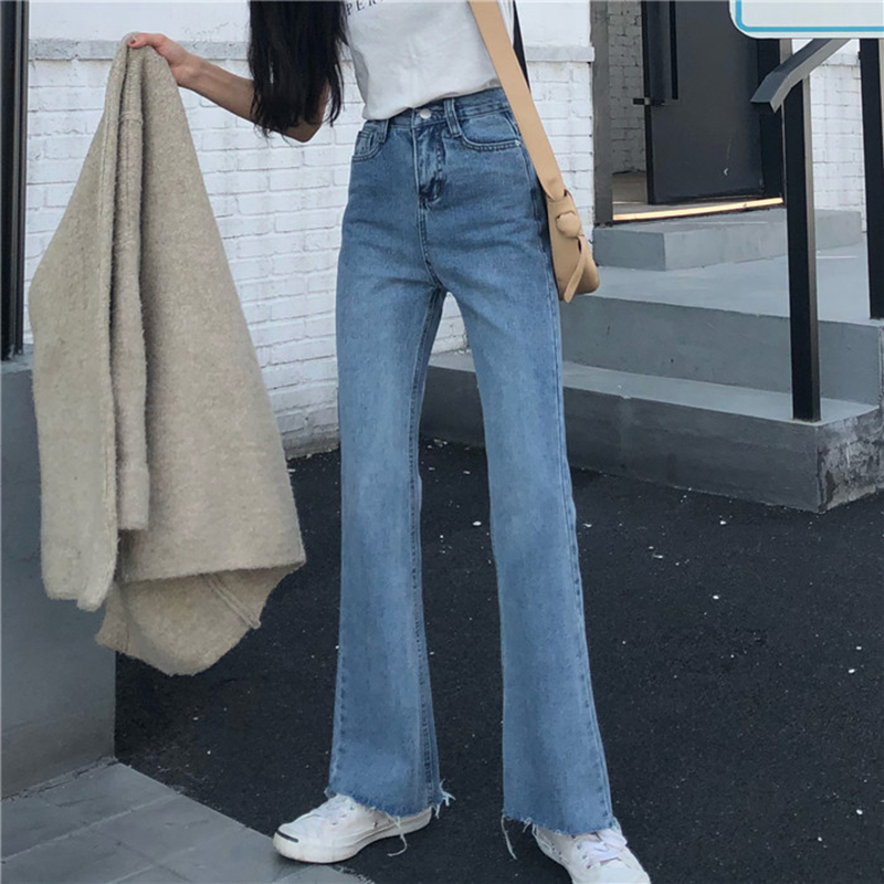 復古超高腰修身微喇叭顯高牛仔褲女春秋2018新款韓版顯瘦百搭長褲