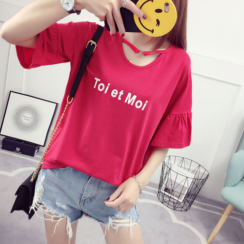 喇叭袖t恤短袖上衣女夏裝新款韓版學生百搭寬松夏季體恤衫潮
