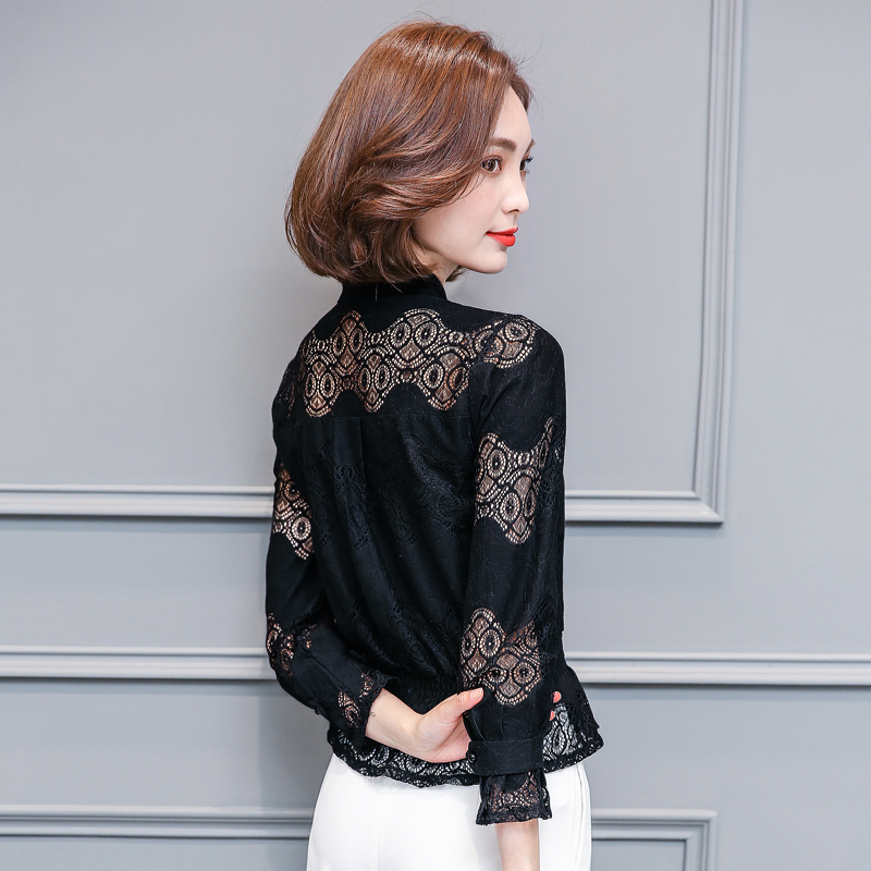 夏季大碼女裝2017新款春時尚鏤空蕾絲韓版寬松雪紡長袖上衣小衫