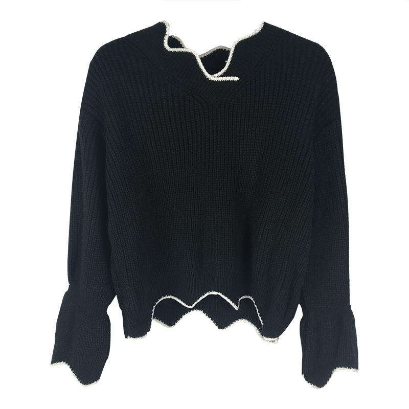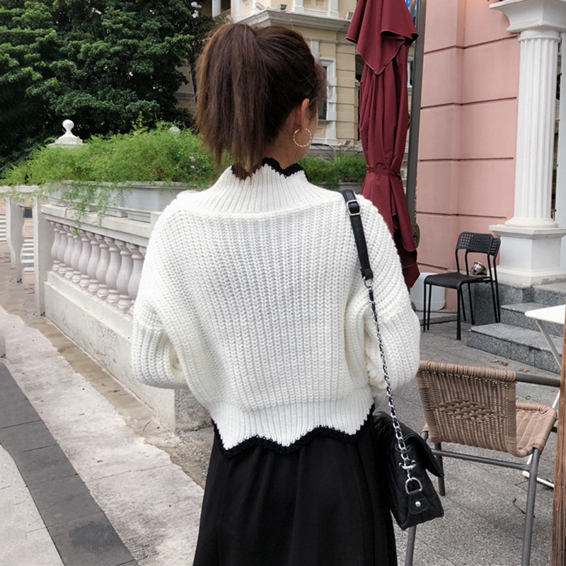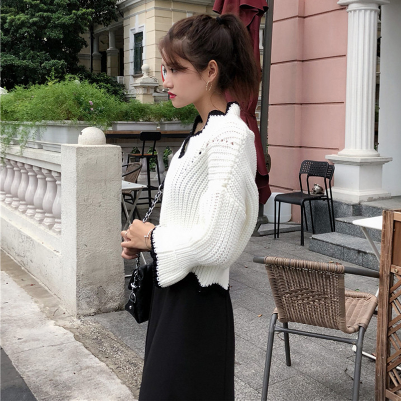 慵懶毛衣女2018秋裝新款清新長袖短針織衫學生不規則撞色寬松上衣